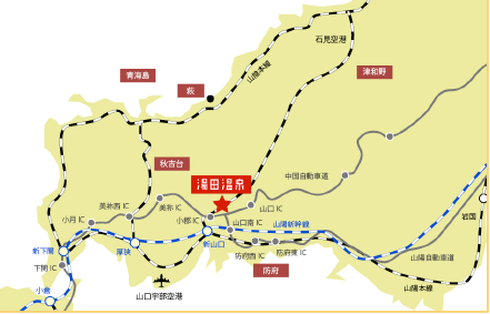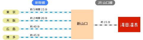 → 「湯田温泉駅」下車から徒歩で約10分